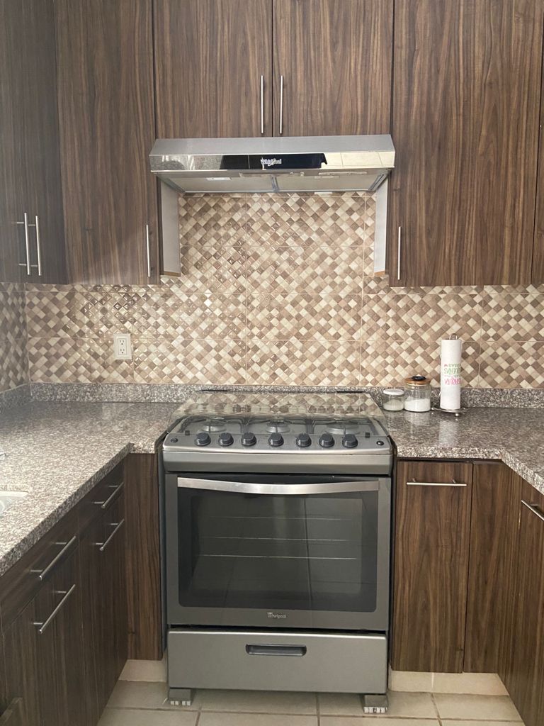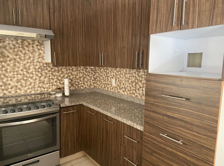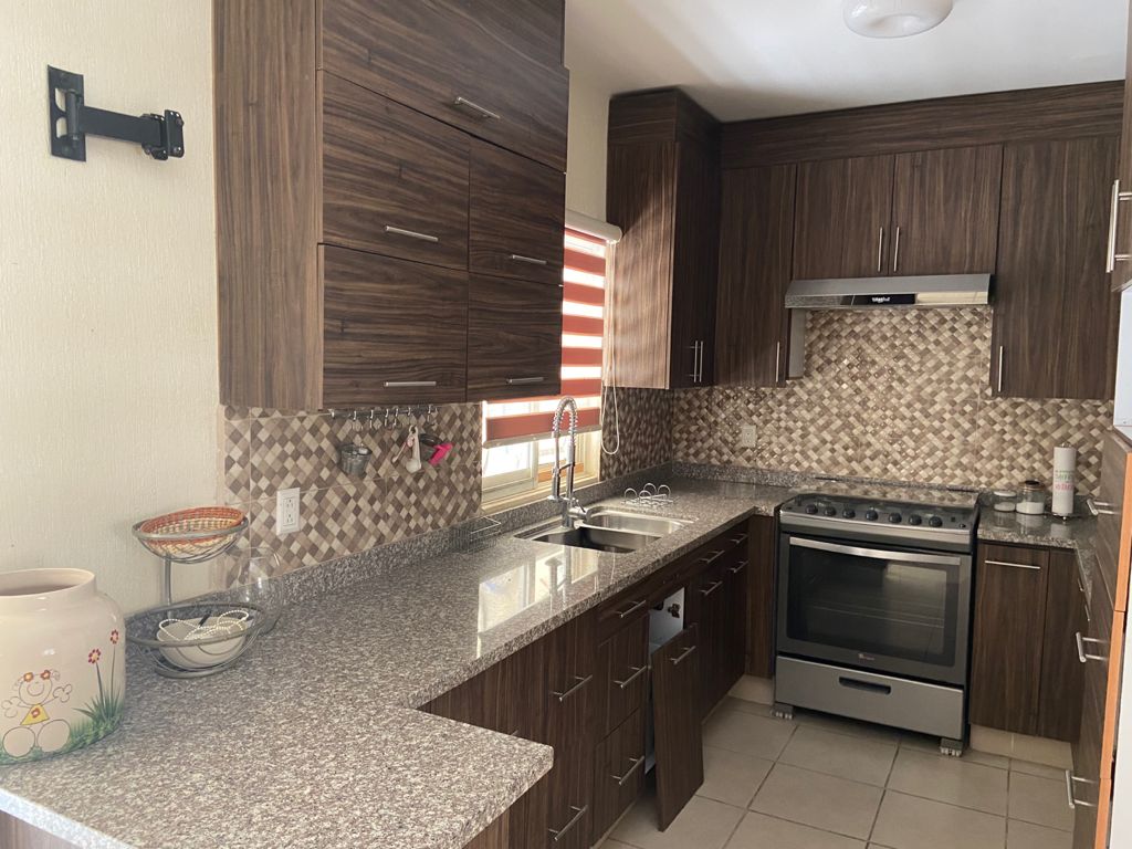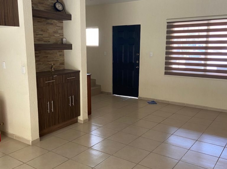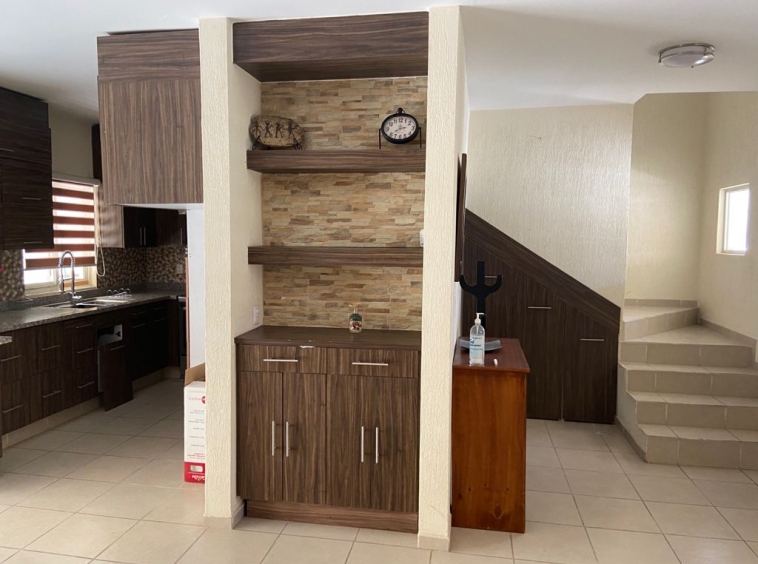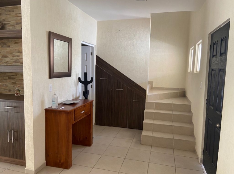 Amplia estancia, cocina equipada, closet debajo de la escalera, 1/2 baño, patio de servicio y cochera para 2 autos