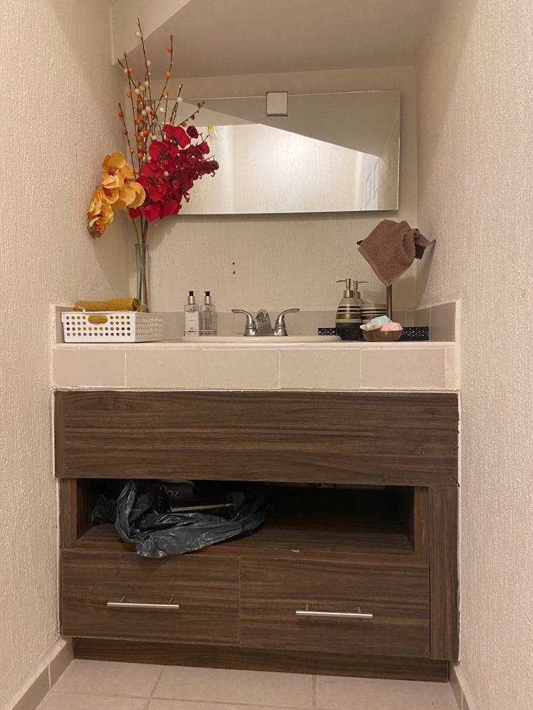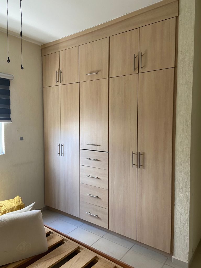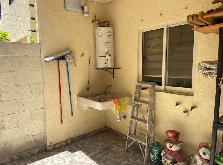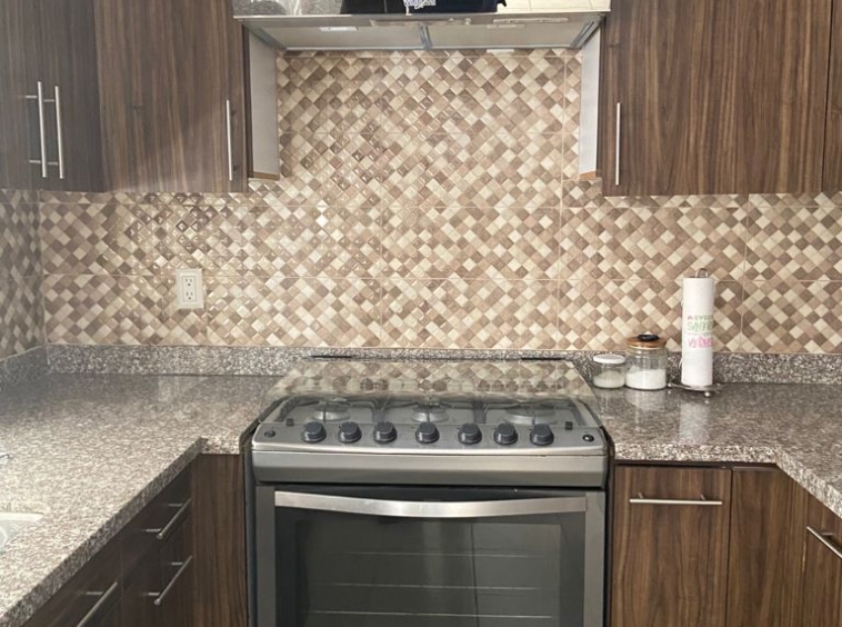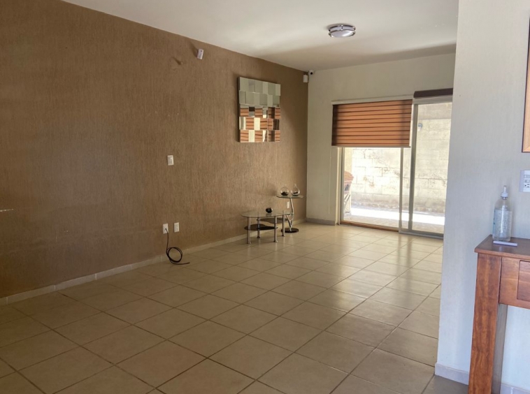 Amplia estancia, cocina equipada, closet debajo de la escalera, 1/2 baño, patio de servicio y cochera para 2 autos