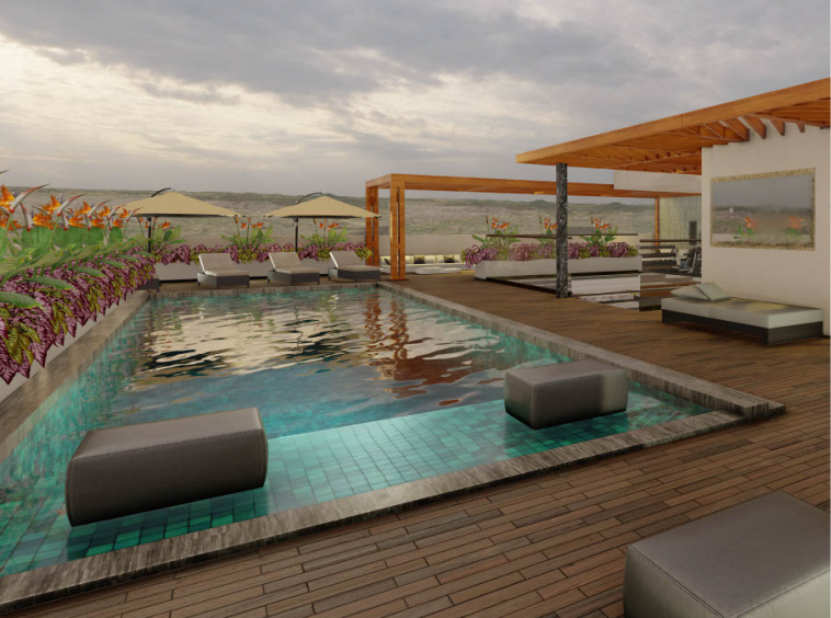 Cuenta con 42 departamentos en 2 torres gemelas de 12 niveles cada una con amenidades, áreas de descanso y entretenimiento propios.